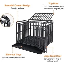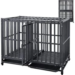 SMONTER Heavy Duty Metal Anxiety Indoor & Outdoor Large Breed Dog Crate, Dark Silver
