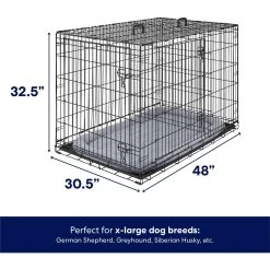Frisco Heavy Duty Enhanced Lock Sliding Double Door Fold & Carry Wire Dog Crate & Mat Kit, 54 Inch