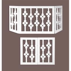 Etna Flower Cut Out Design Adjustable Wooden Pet Gate, White