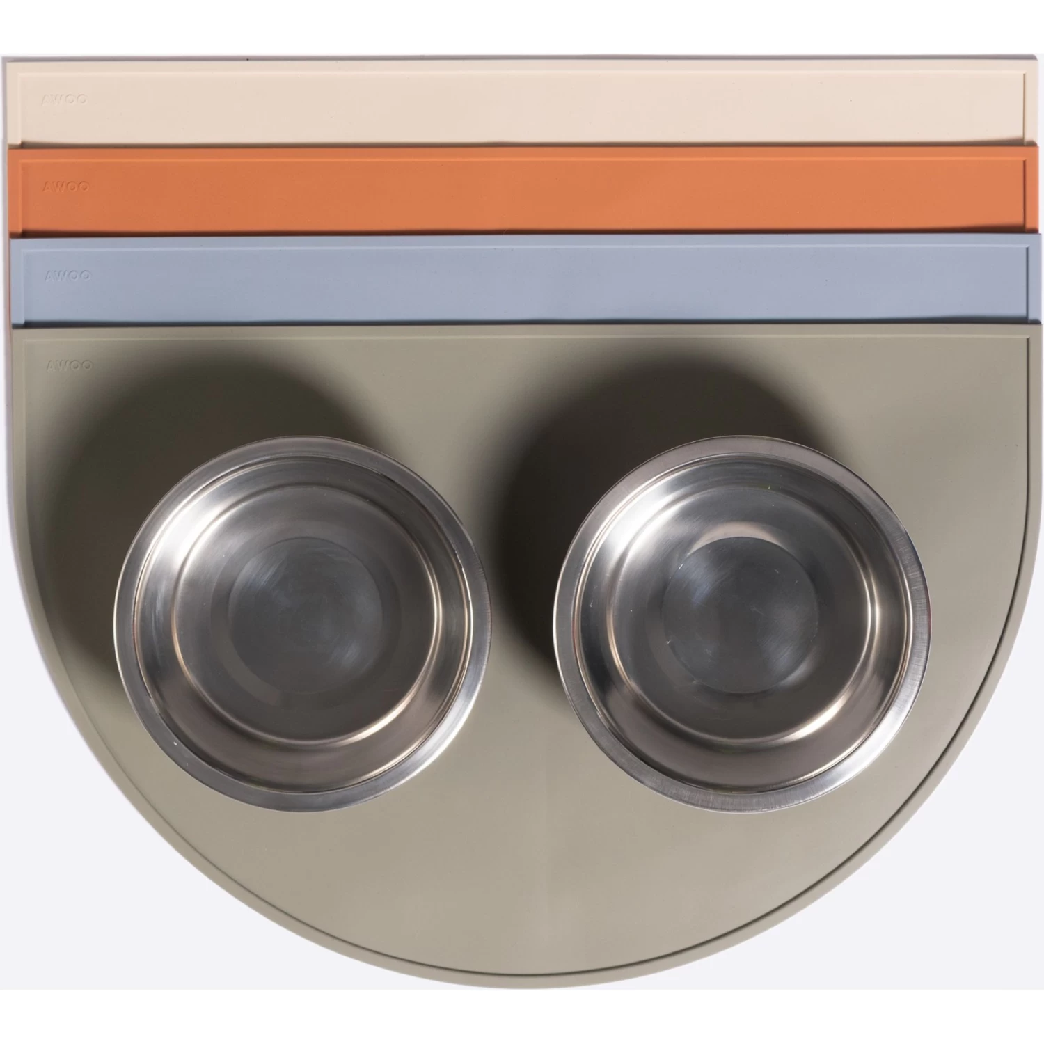 - The large, half-moon shape is a paw-fect fit for two large dog bowls (sold separately).