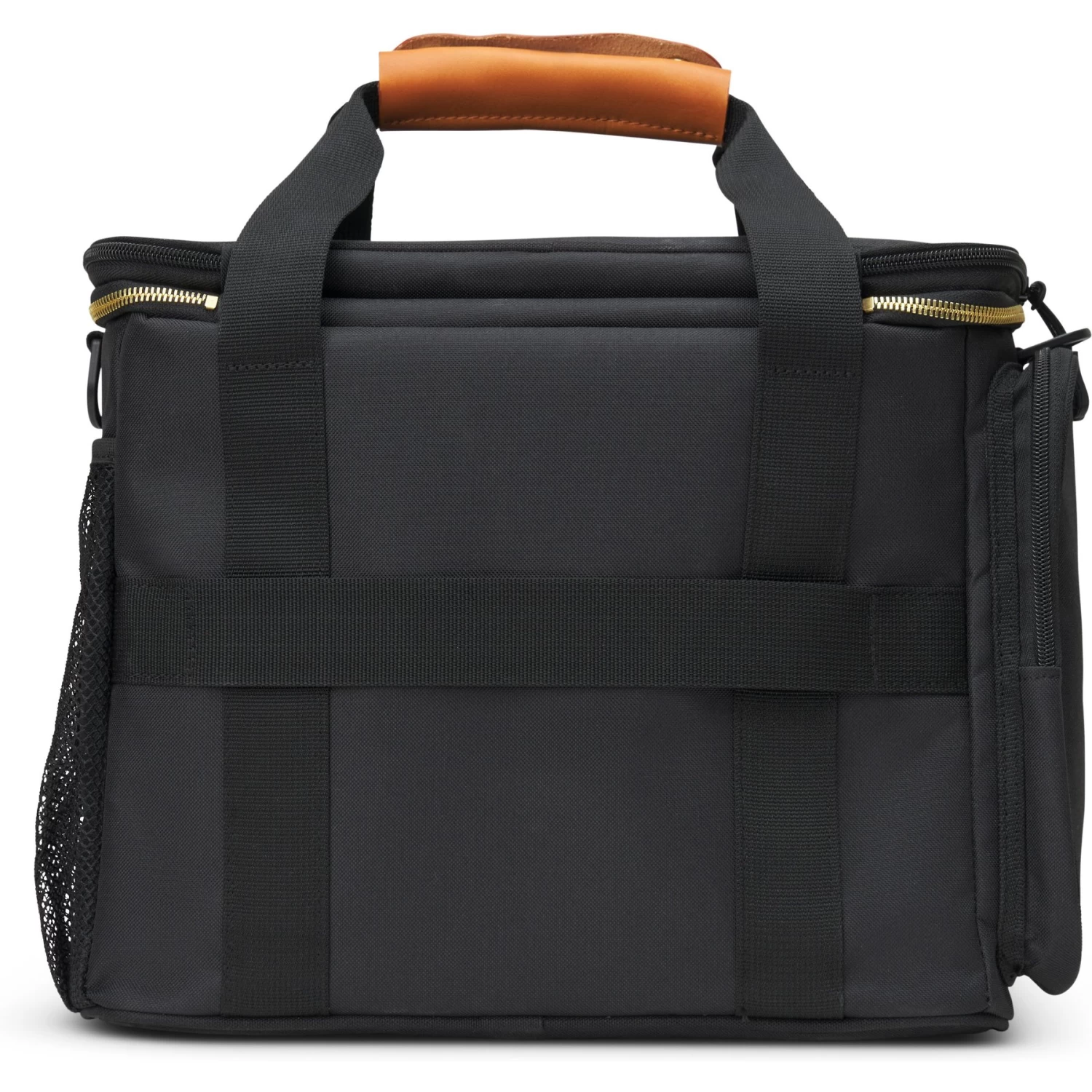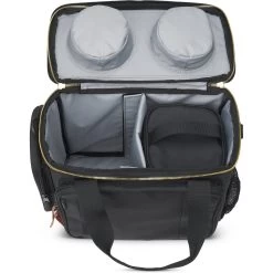 - Features a luggage strap and front zipper pockets that double as an alternate food mat.