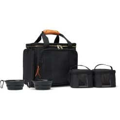 - Features a removable divider and 2 zippered food storage pouches.