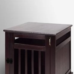 - Roomy side slats and a lockable mission-style door keep your pet contained and well-ventilated.