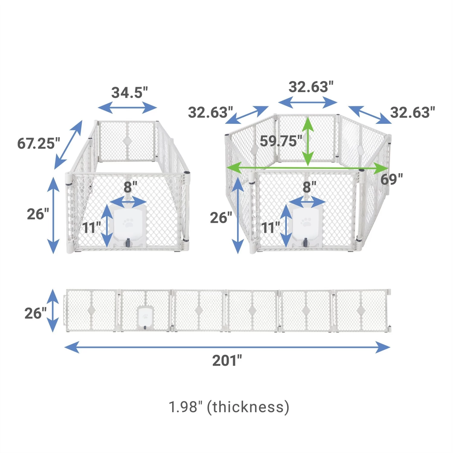 - Creates a secure space for your pup as a freestanding pen with a 19.10 square feet enclosure or use it as an extra-wide barrier for openings up to 201 inches wide.