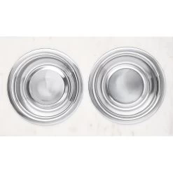 - Stainless-steel bowl set with raised stand elevates your dog’s drinking and eating height.