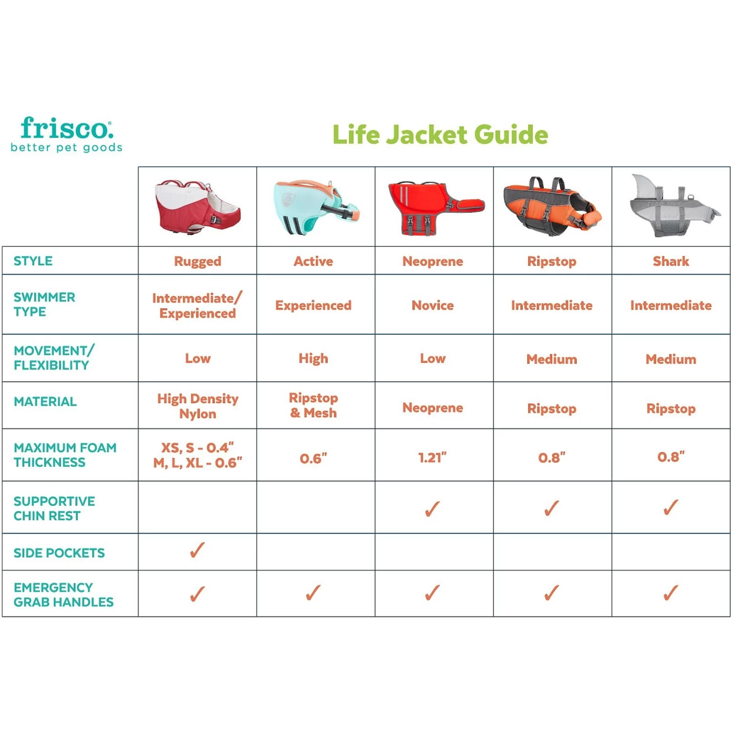 - To find the right jacket for your pup, measure their chest, neck and weight. Then, compare their measurements to the size chart and the Maximum Buoyant Weight listed.