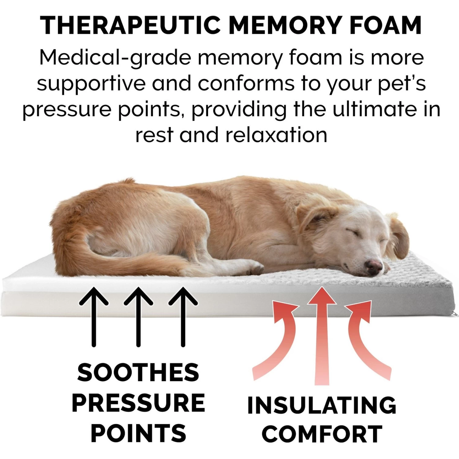 - Insulating memory foam pet bed is covered with silky-soft faux fur and durable oxford polycanvas.