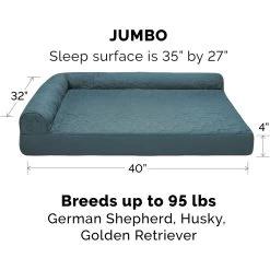 - Fluff-filled bolster railings support the neck, back, hips, and joints to ease discomfort and encourage restful sleep.