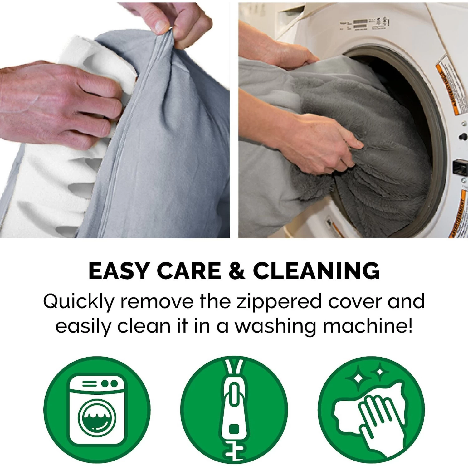 - The cover is complete machine washable and easy to remove for hassle-free cleaning.