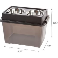 Be the first to review “IRIS USA WeatherPro Airtight Elevated Pet Feeder With Food Storage Container & Bowls In Lid, Smoke/Black, 8-cup” Cancel reply
