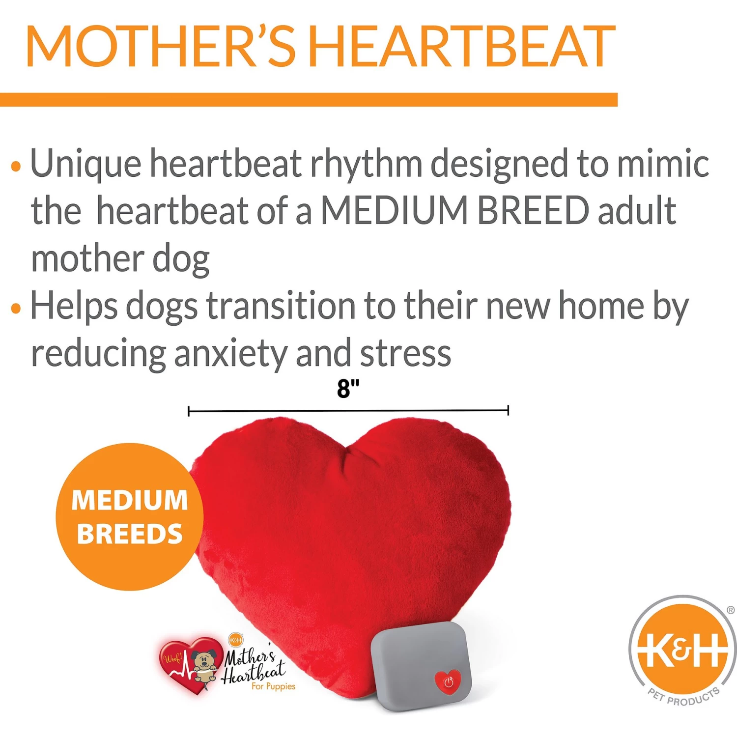 New pup coming home? Make the transition smoother with K&H Pet Products Mother’s Heartbeat Puppy Heart Pillow. Combining the calming sounds and feel of a mother’s heartbeat with a soft pillow, this set creates a cozy experience for your best bud. Each pillow includes a heartbeat device that installs into the zippered pocket and is designed to replicate the number of heart beats per minute based on breed size, so your furry friend is comfortable at any size.
