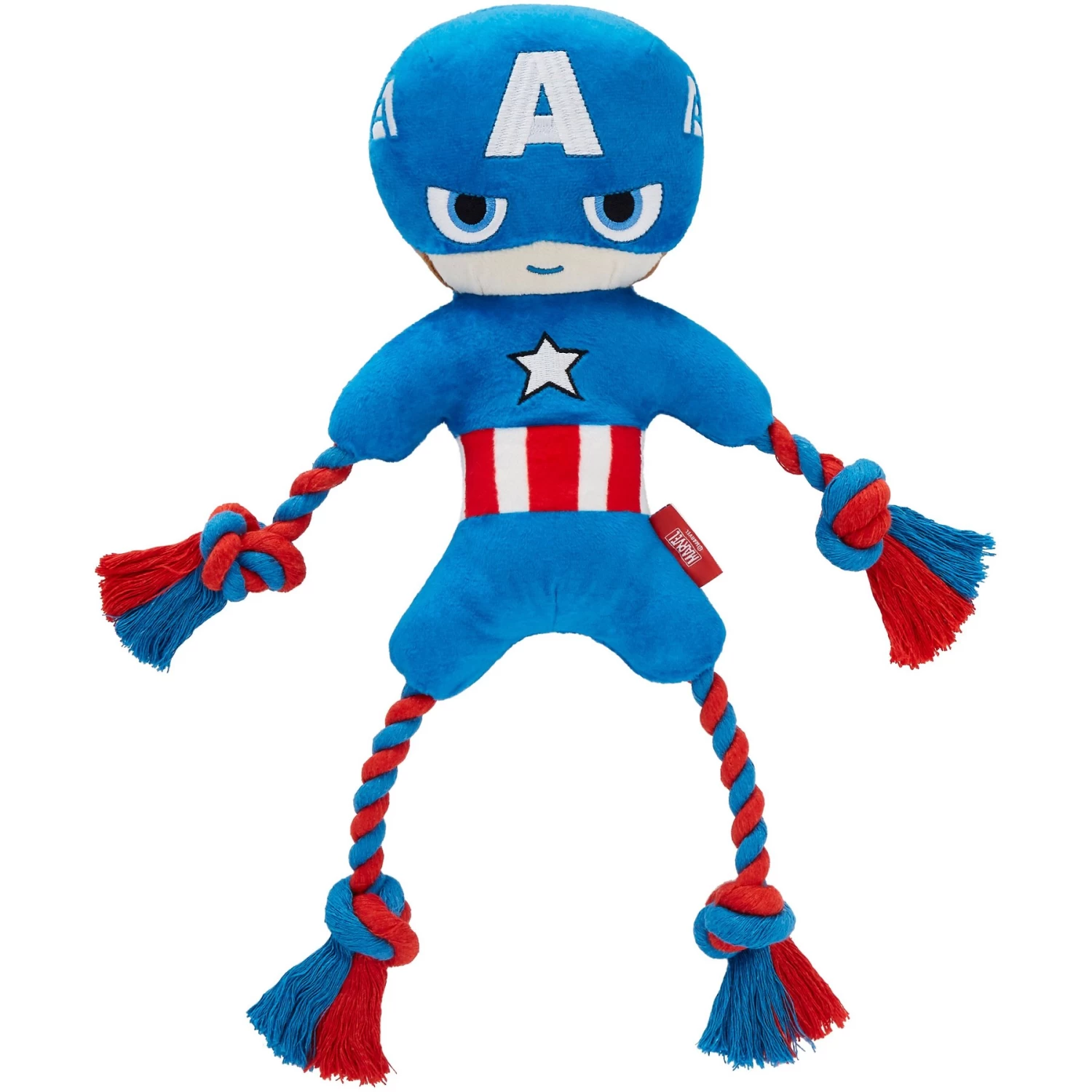 - Plush Captain America body has a soft cover with plush stuffing and two squeakers inside.