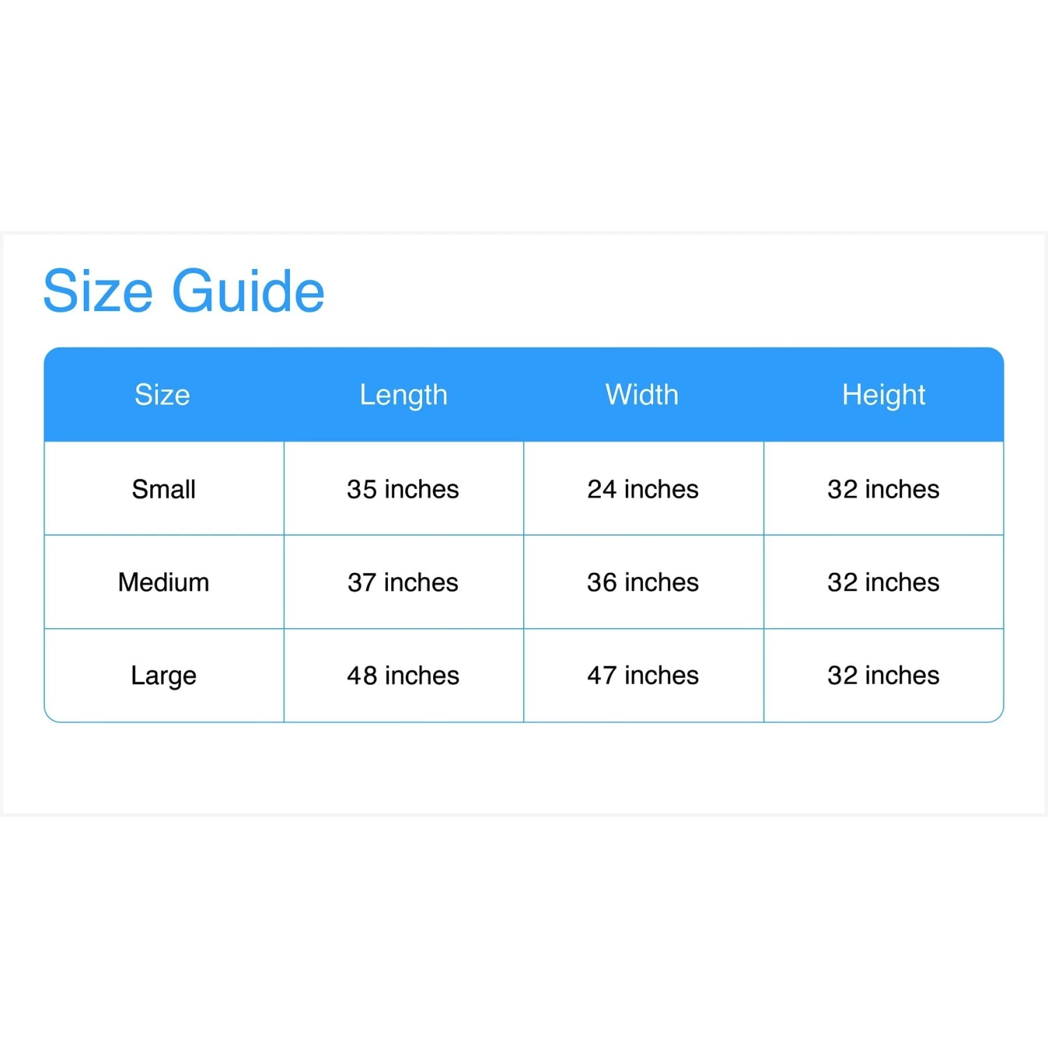 | Size | S: 35-in L x 24-in W x 32-in H, Med: 37-in L x 36-in W x 32-in H |