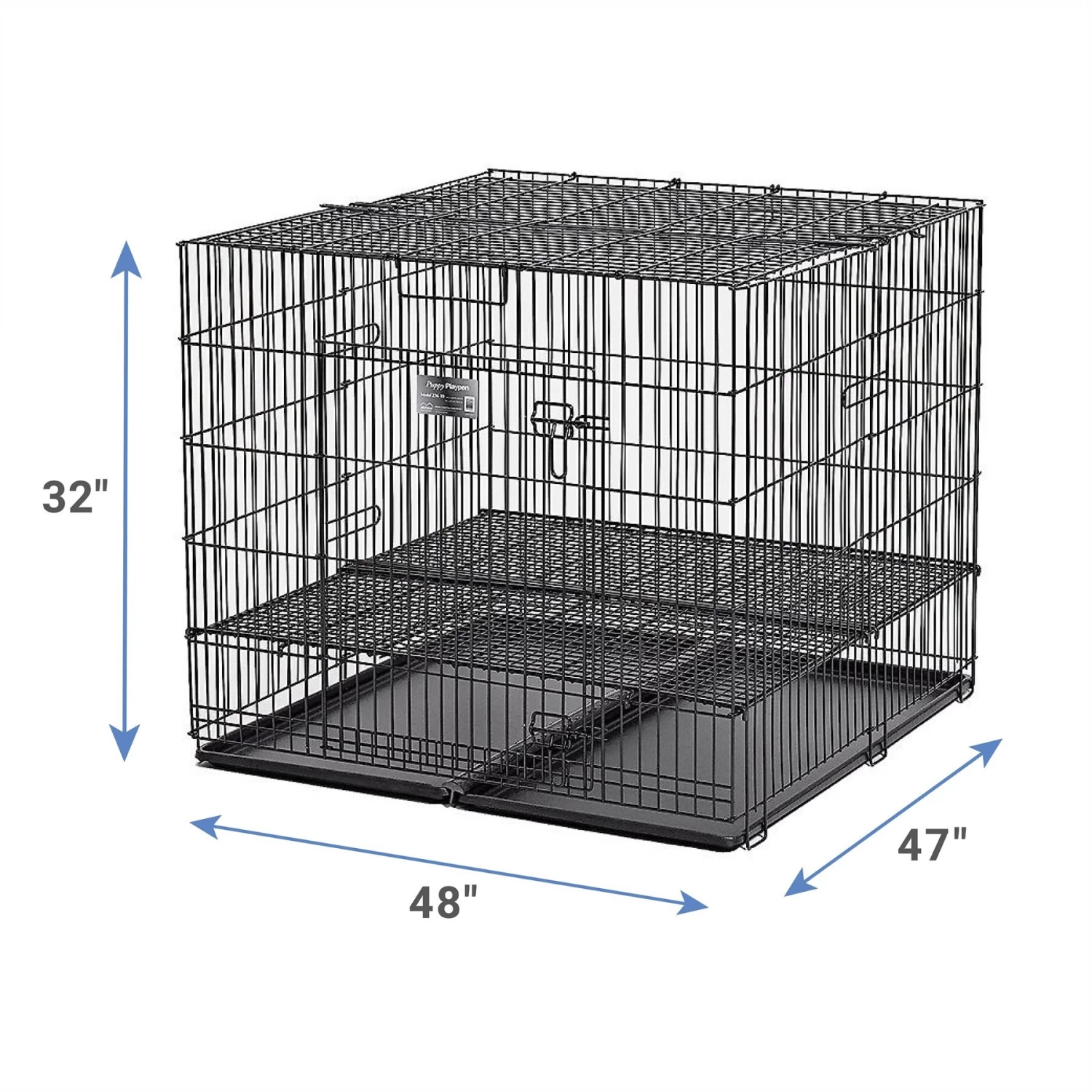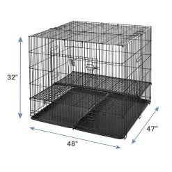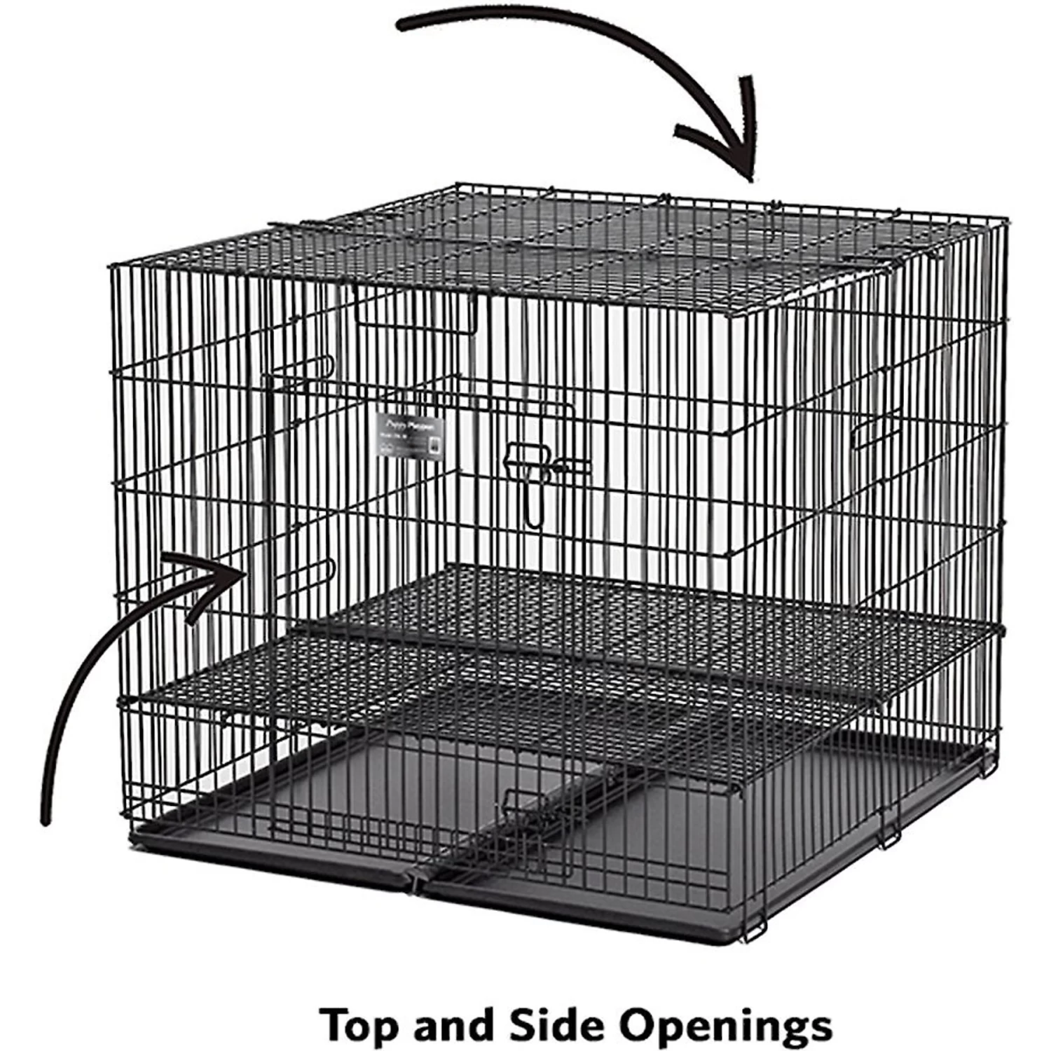 - Features a leak-proof plastic pan, paw-friendly elevated floor grid, secure front door and top panel opening for convenient puppy access.