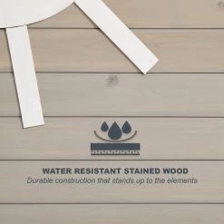 - Made with high-quality components — water-resistant stained wood, stainless-steel hardware and asphalt-shingled roof.