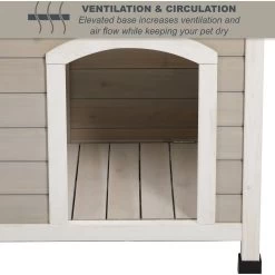 - Raised floor allows good air circulation, and waterproof design protects your furry friend from the elements all year round.