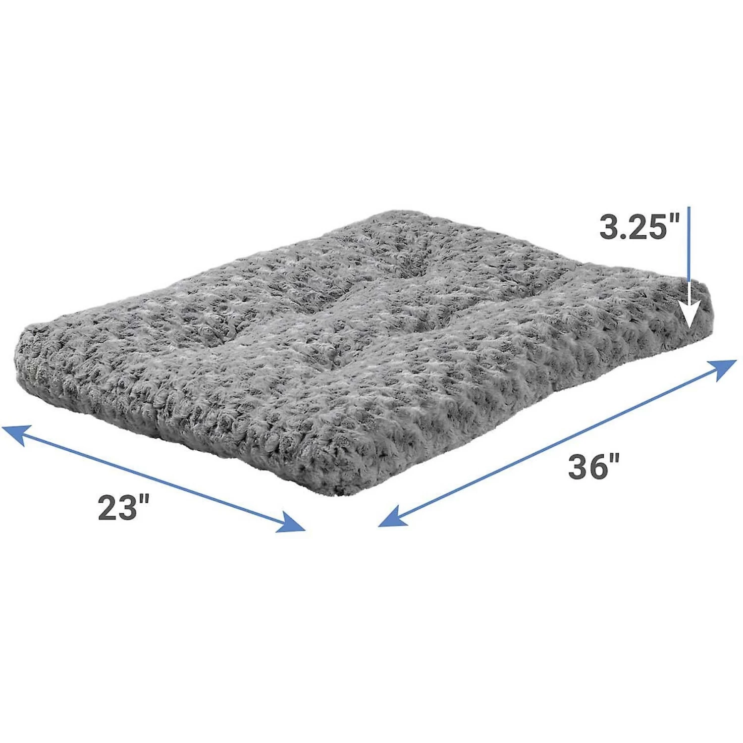- Ultra-soft synthetic fur surface entices your pal to lay in her crate.