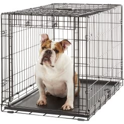- Safe and secure slide bolt latch keeps your pet secure inside the crate. Rounded corners for pets protection from injury.