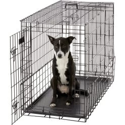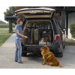 - Versatile double-door with front and rear door access makes transporting your medium to large breed dog easy.