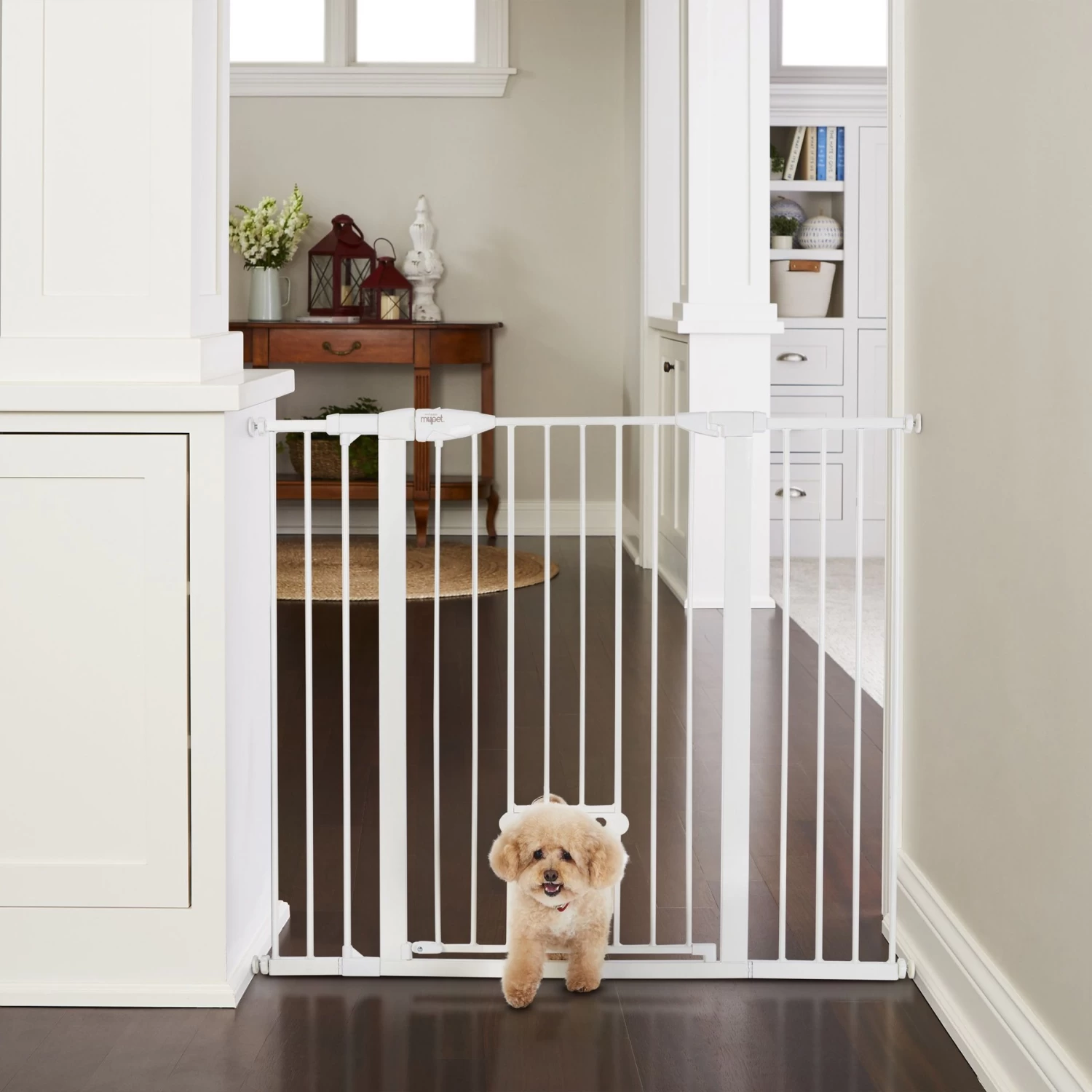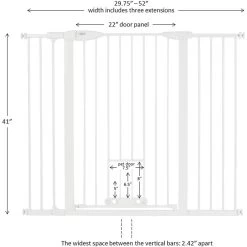 - Extra-tall, 41-inch pet gate adjusts to fit spaces 29.75 to 52 inches wide.
