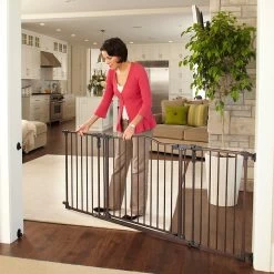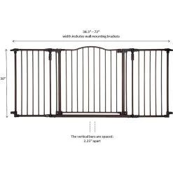 - Pet gate adjusts to fit extra-wide openings in rooms or hallways between 38.3 to 72 inches wide and is 30 inches high.