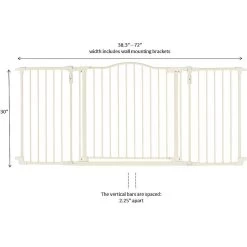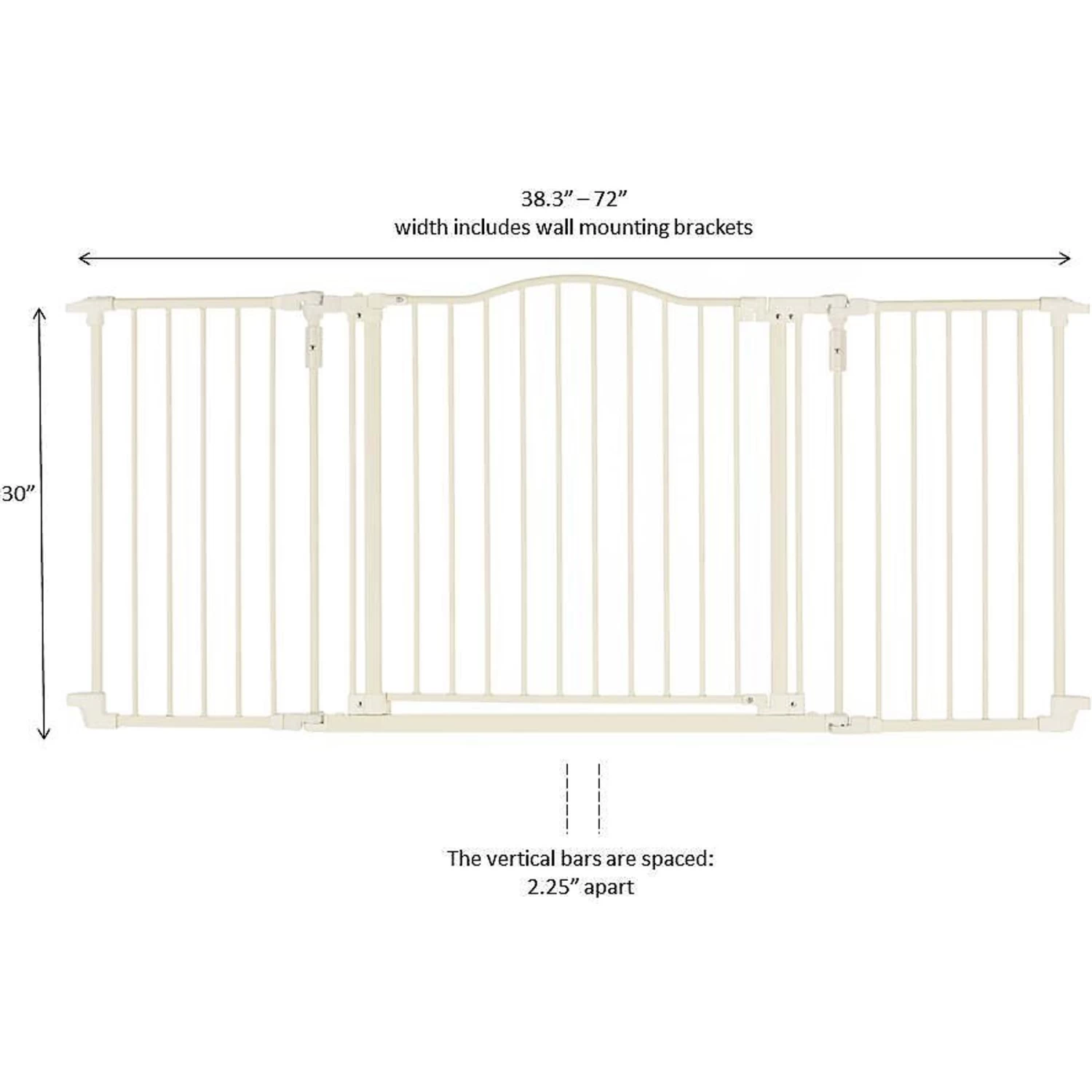 - Hardware-mounted gate fits openings 38.3-inches to 72-inches wide.