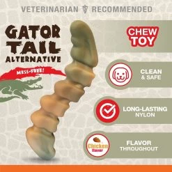 Check out the Nylabone Power Chew Gator Tail Alternative Chew Toy Chicken. This natural alternative brings the fun gator tail shape to your pup’s collection while giving him a drool-worthy chicken flavor that’s almost like gator, without the bite. This chew toy has a fun texture that is designed to last longer, be safer and mess free. Let your four-legged buddy go wild and chew this durable alligator toy.