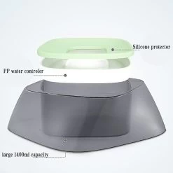 - Features an innovative floating splash guard that raises as water levels deplete to prevent splashing from messy drinkers.