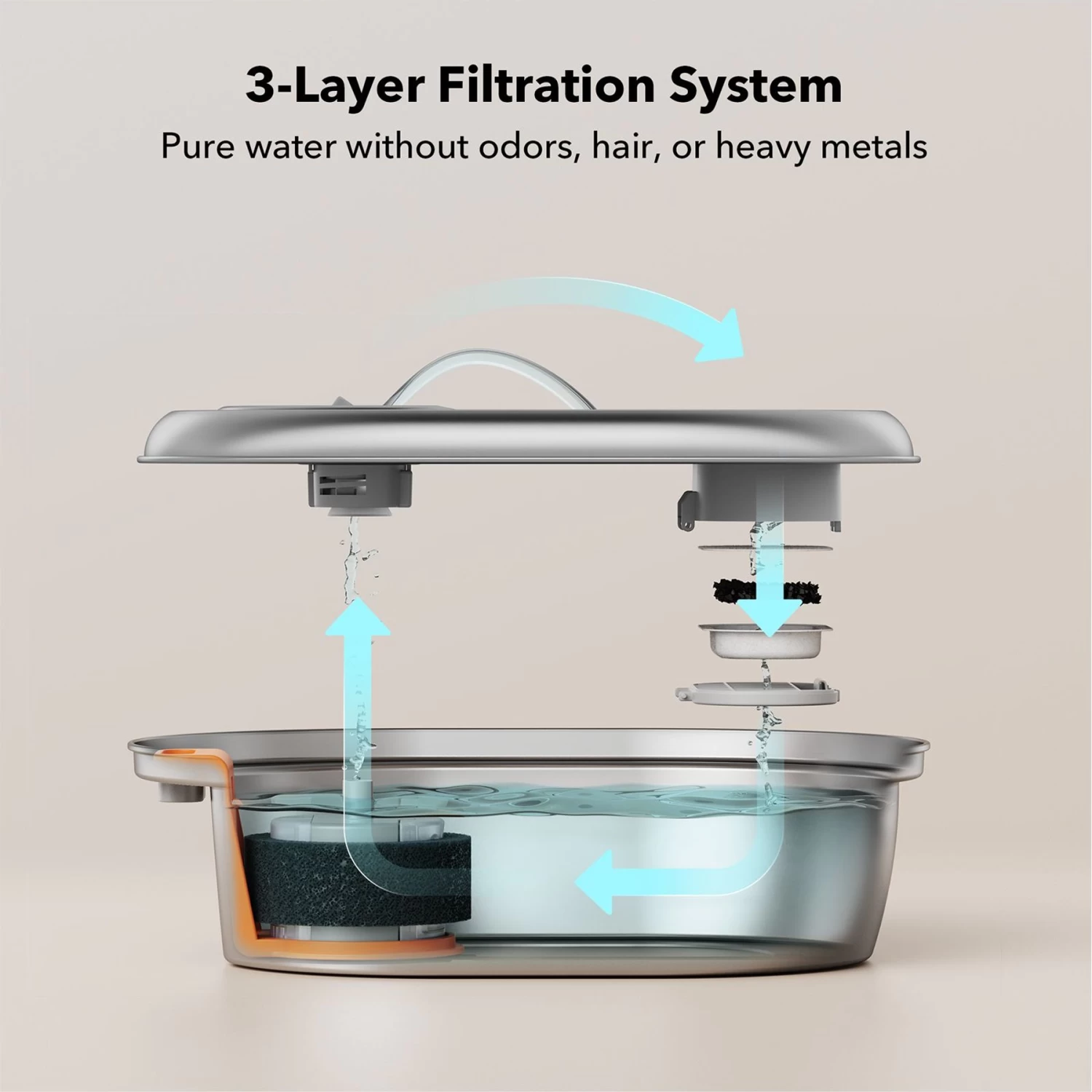 - Pet fountain filter works to effectively remove hair and heavy metals from your pal’s water while keeping it fresh and tasty.