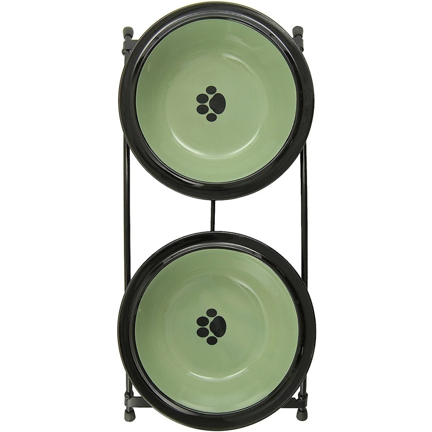 - Includes elevated feeder and two ceramic 2 cup (16 ounce) bowls that are dishwasher safe for easy and sanitary cleanup.