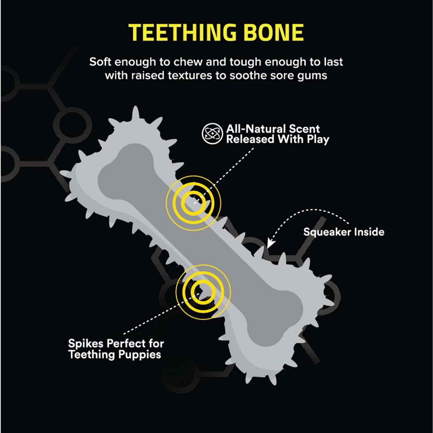 - Solid-cast nubs help to provide teething relief but are tough enough to last.