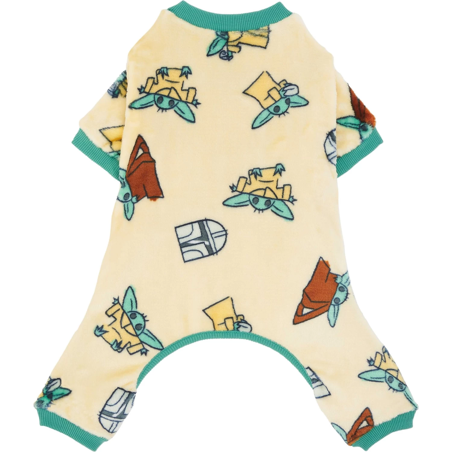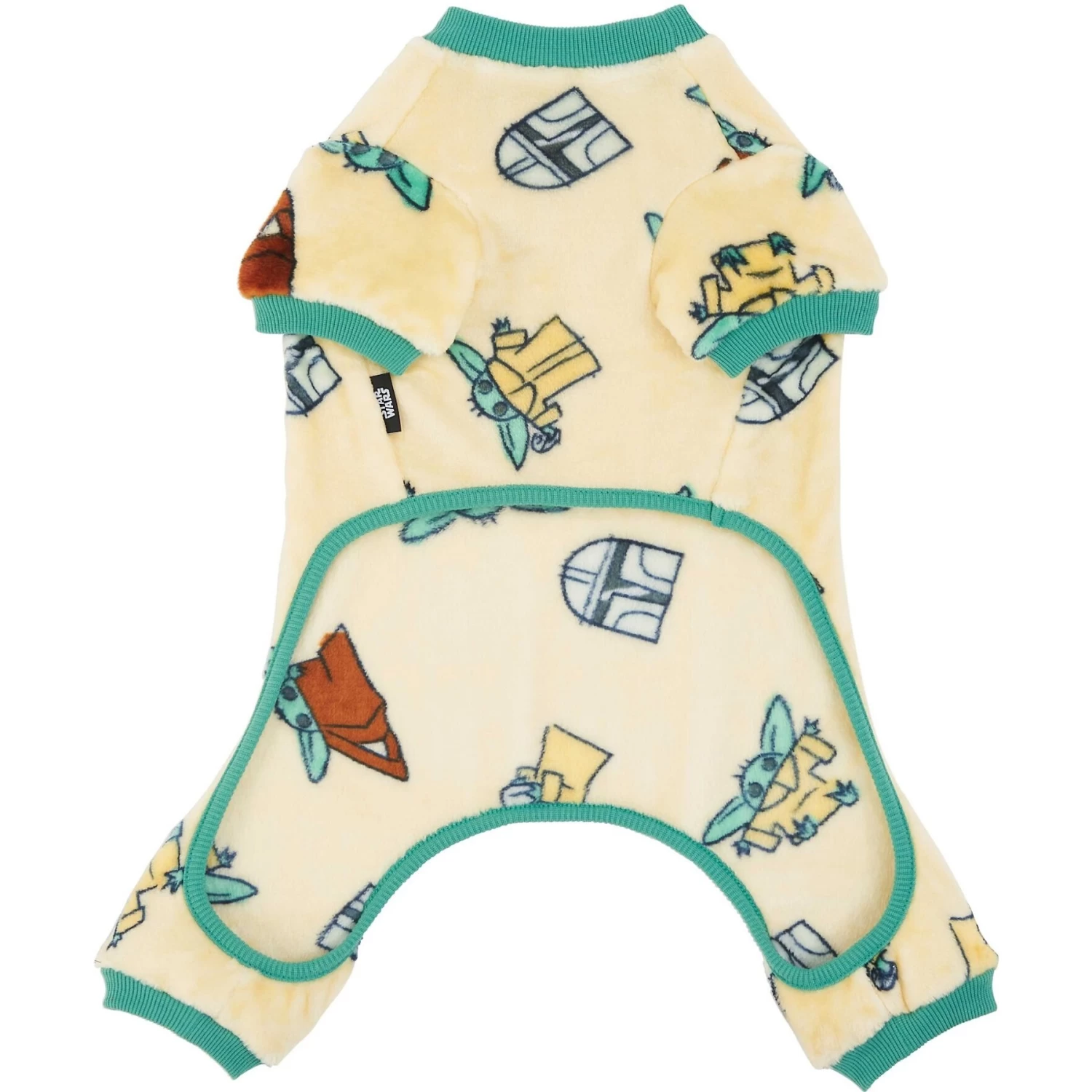 - Mandalorian-themed pattern featuring Grogu and Mando adds an adorable touch to your pet’s loungewear.
