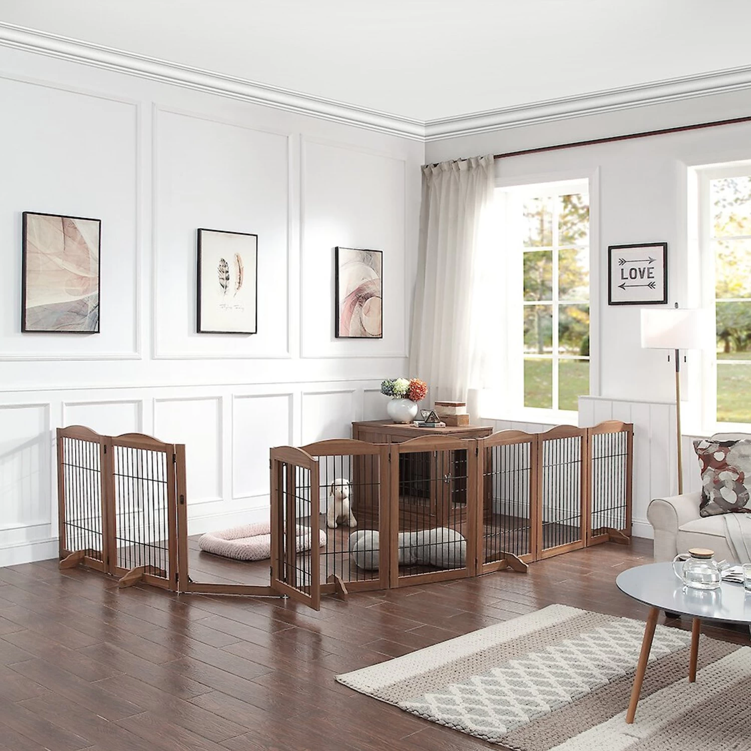 - This 2-panel dog gate can be used on its own for smaller spaces.