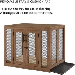 - Features an elegant wooden frame and chew-resistant metal mesh.