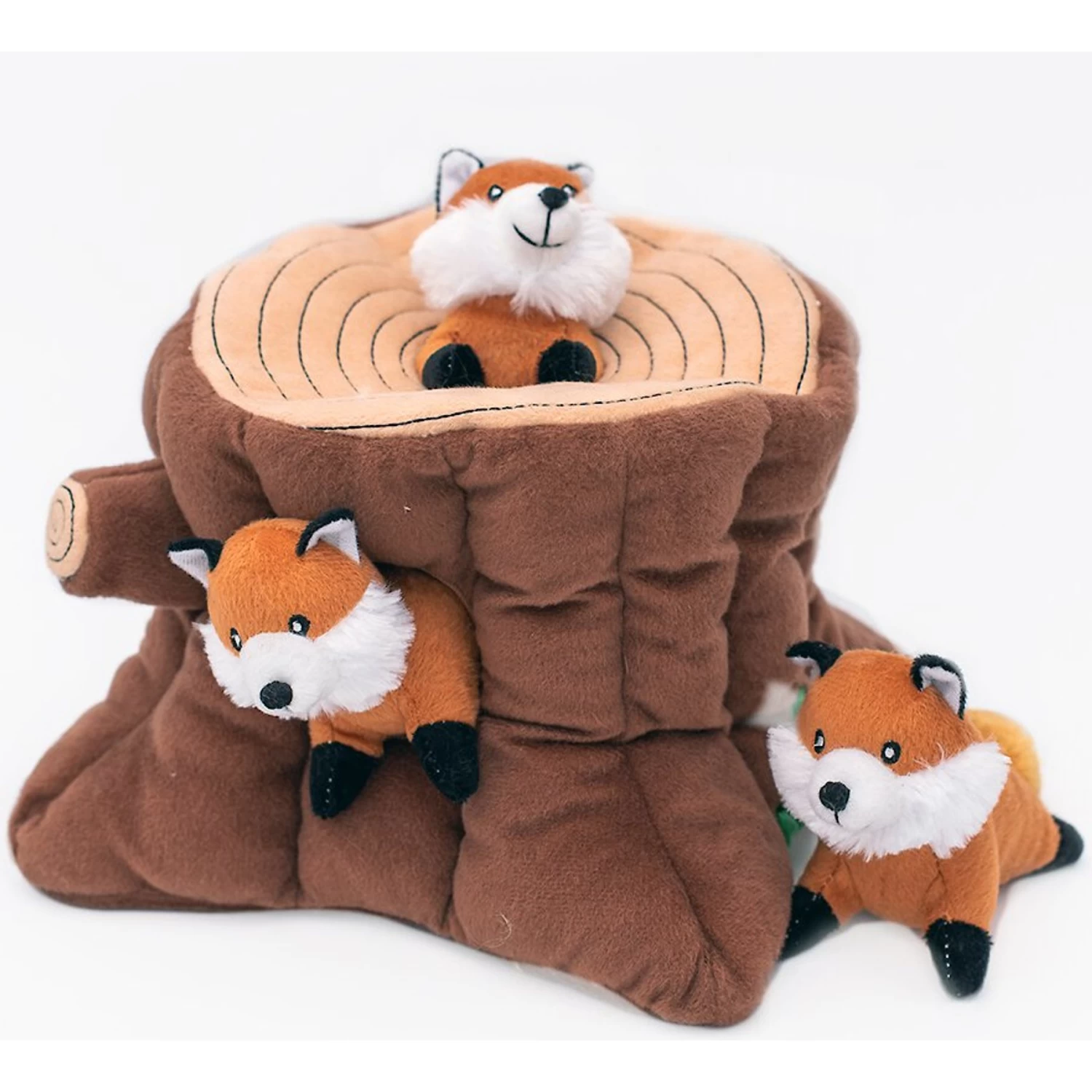 - Comes with 1 log and 3 squeaky foxes.